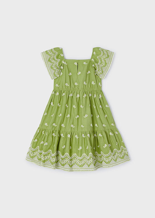 Girls Green Embroidered Dress