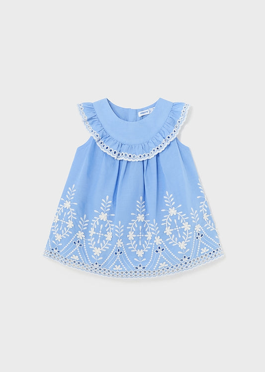 Baby Girl Blue Embroidery Poplin Dress