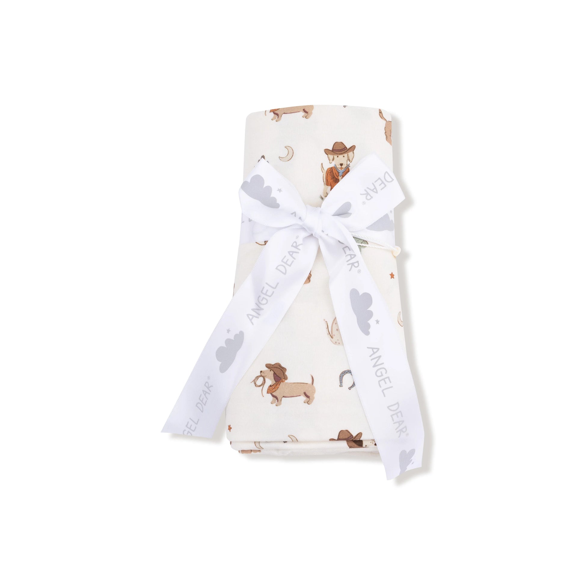 Wrap your little one in the cozy charm of our Cowboy Dogs Swaddle Blanket. Featuring playful pups in cowboy hats, this soft blanket keeps babies snug while sparking imagination. Perfect for naps, cuddles, and adventures in dreamland!