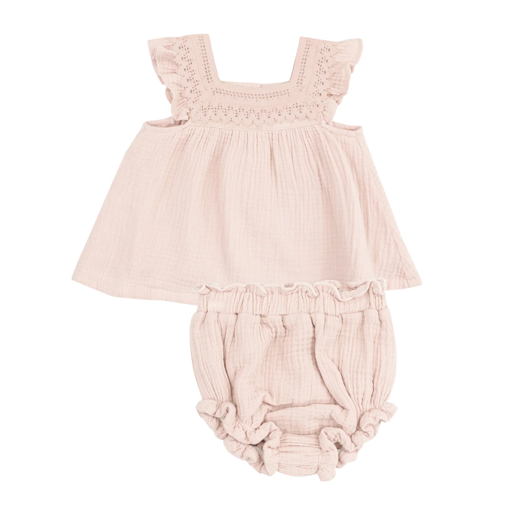 Charming & Comfy: Organic Muslin Pinafore with High Waisted Diaper Cover! 🌸
